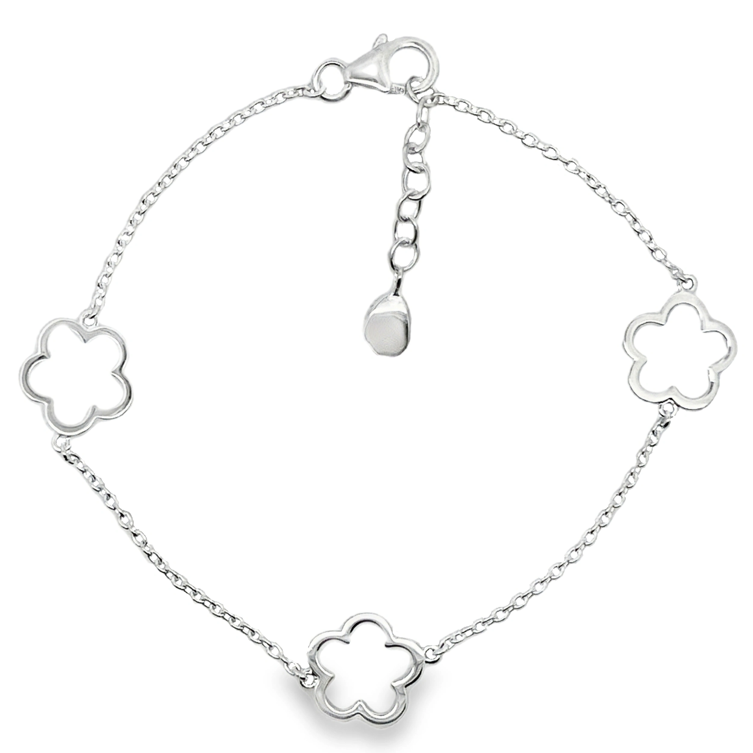A pretty sterling silver bracelet with modern style flower links.