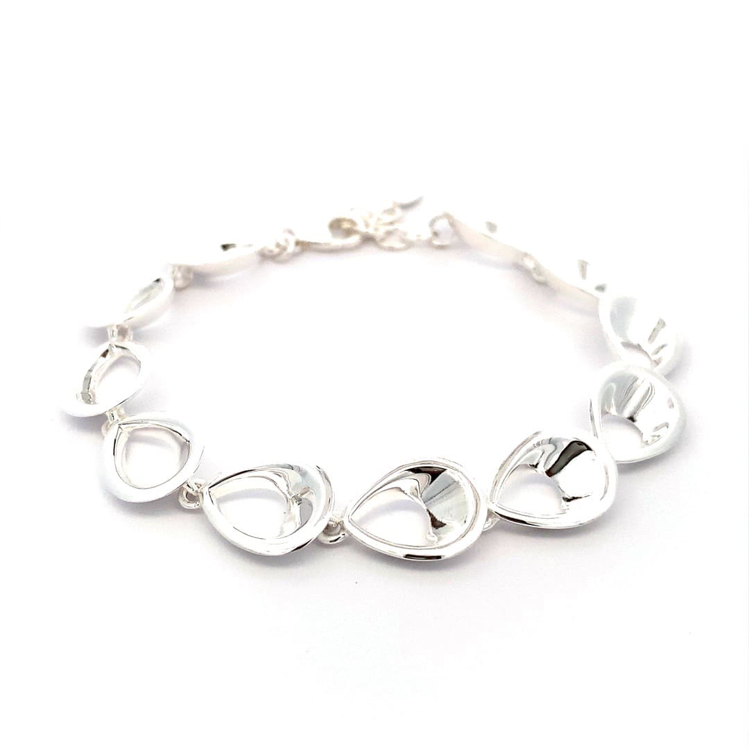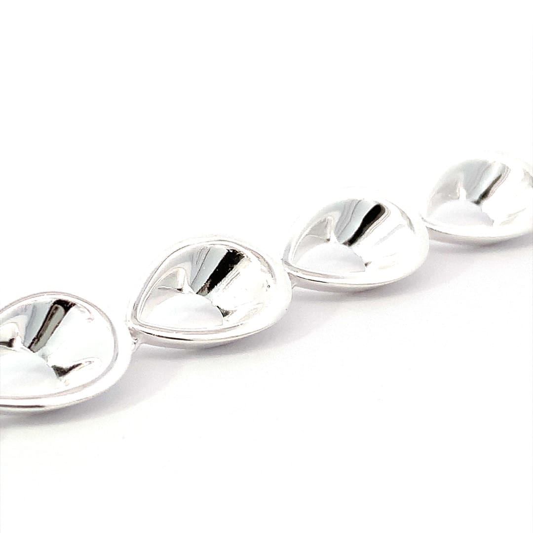 A pretty sterling silver bracelet with cupped, pear shape links.