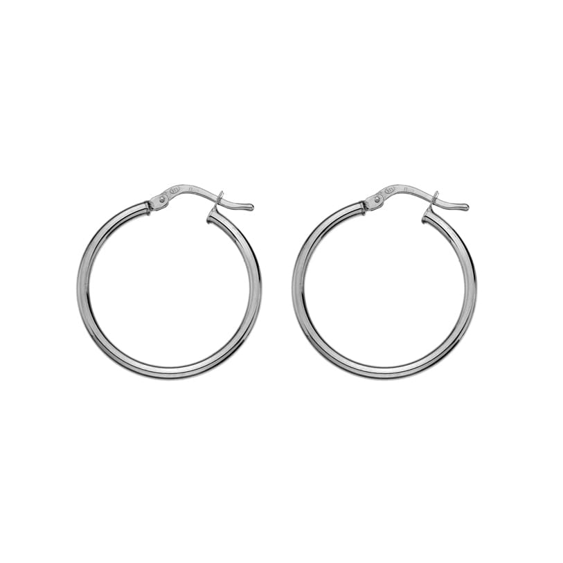 A simple pair of creole style sterling silver hoop earrings made with hinged post.