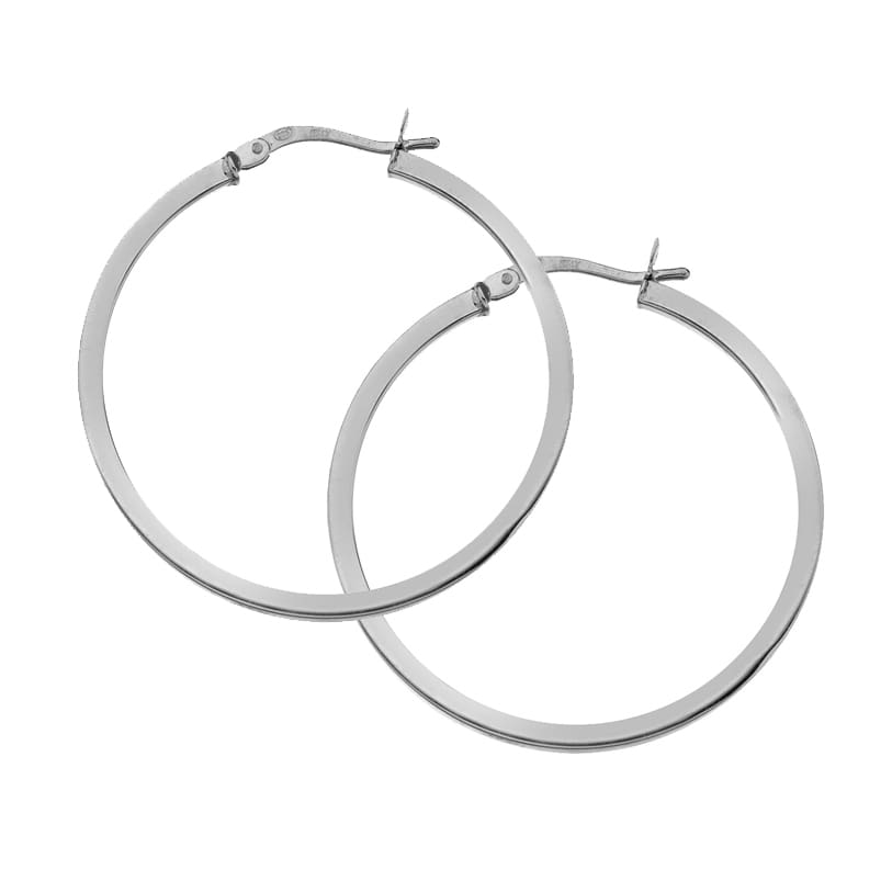 A simple pair of creole style sterling silver hoop earrings made with a square wire.