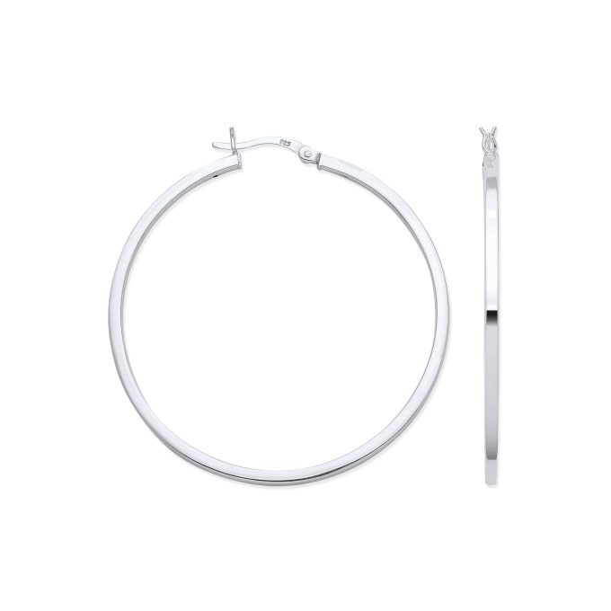 A strong pair of 45mm diameter square section hoop earrings with a polished finish.