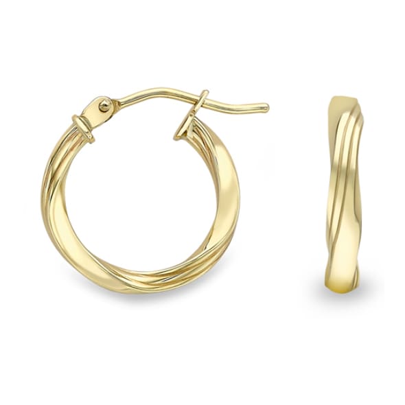 These hollow 9 carat yellow twisted gold hoop earrings catch the light nicely.