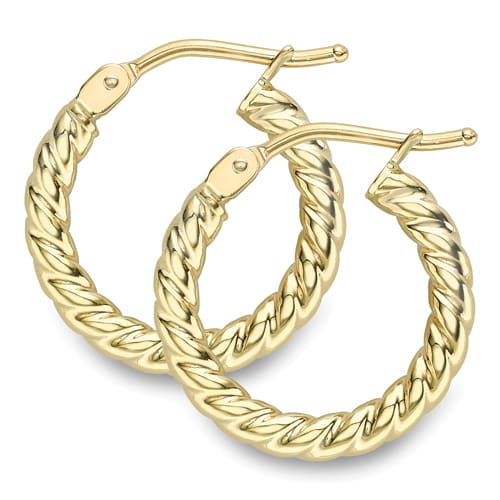 These hollow 9 carat yellow twisted gold hoop earrings catch the light nicely.