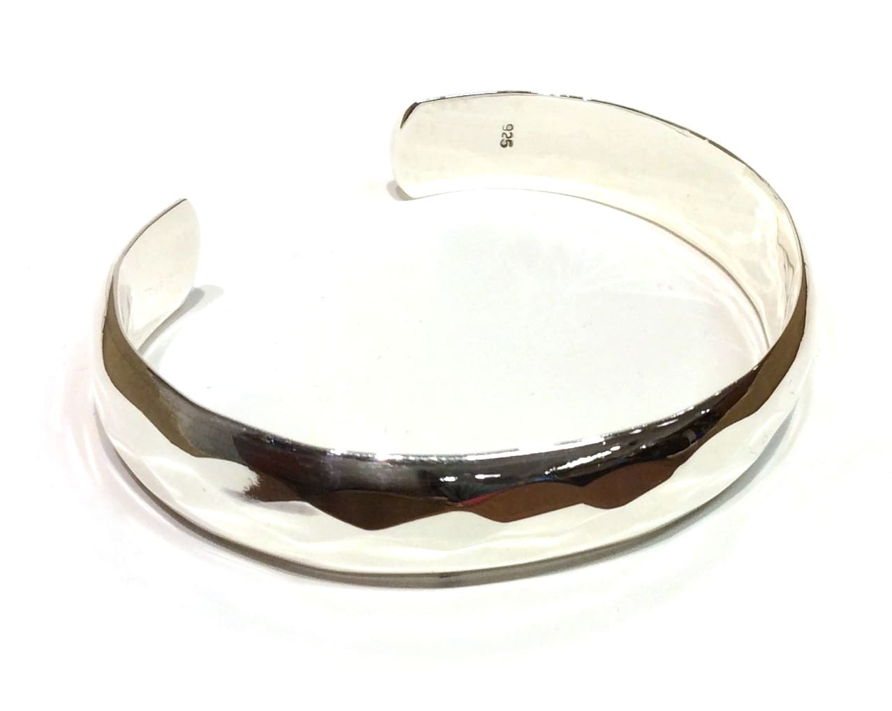 A sparkling hammered cuff with a solid construction.Metal: 925 Sterling SilverWidth: 12 mmInternal Diameter: 62 mmOpening Width: 25 mmGift Boxed