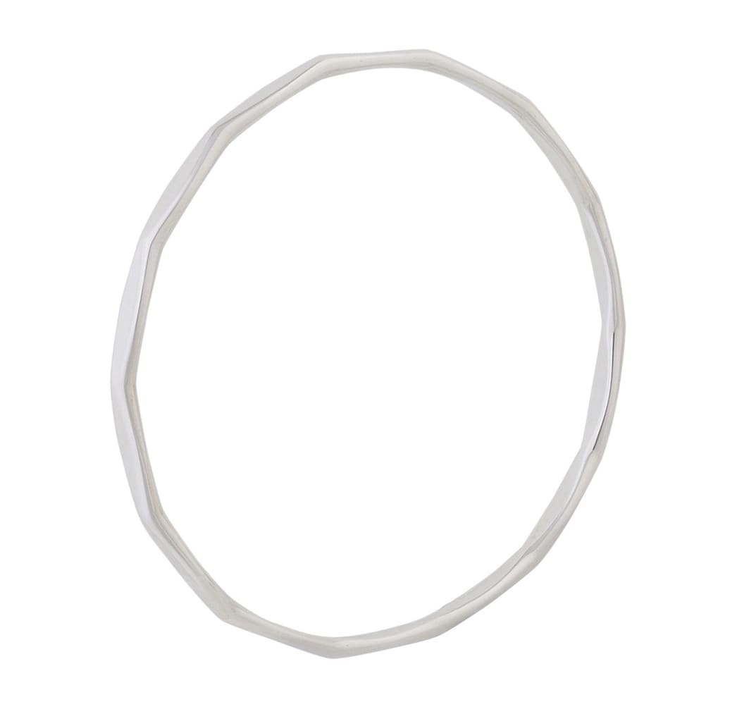 A pretty solid silver faceted bangle with a polished finish . Perfect for stacking.