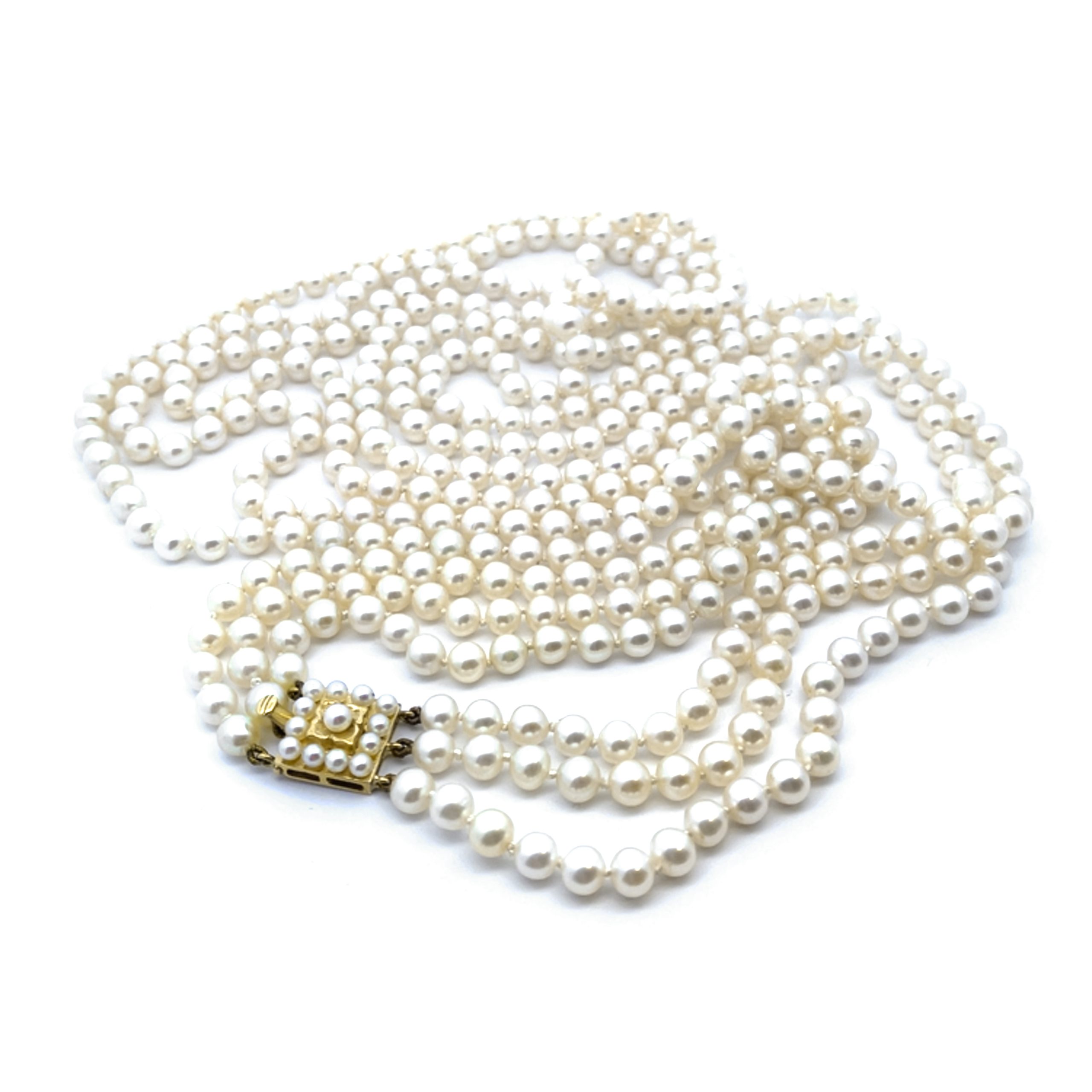 Three Row Pearl Necklace with 9ct Gold Clasp