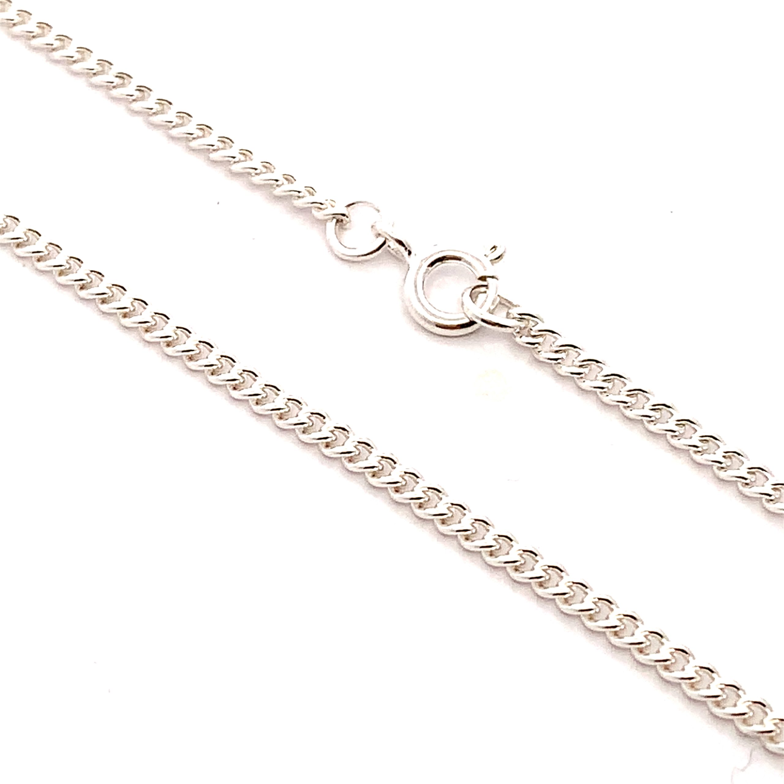 An oval silver locket with hand engraved scrolling design on the front side. Comes on a strong traditional curb chain.