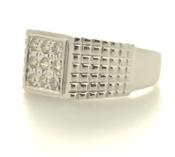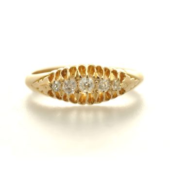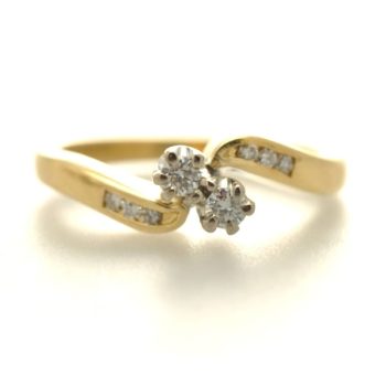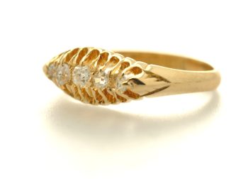 A classic ladies diamond Trilogy ring in 18 carat Gold, comprising of three Princess Cut Diamonds claw set in white gold with a yellow gold D shaped profile shank.
