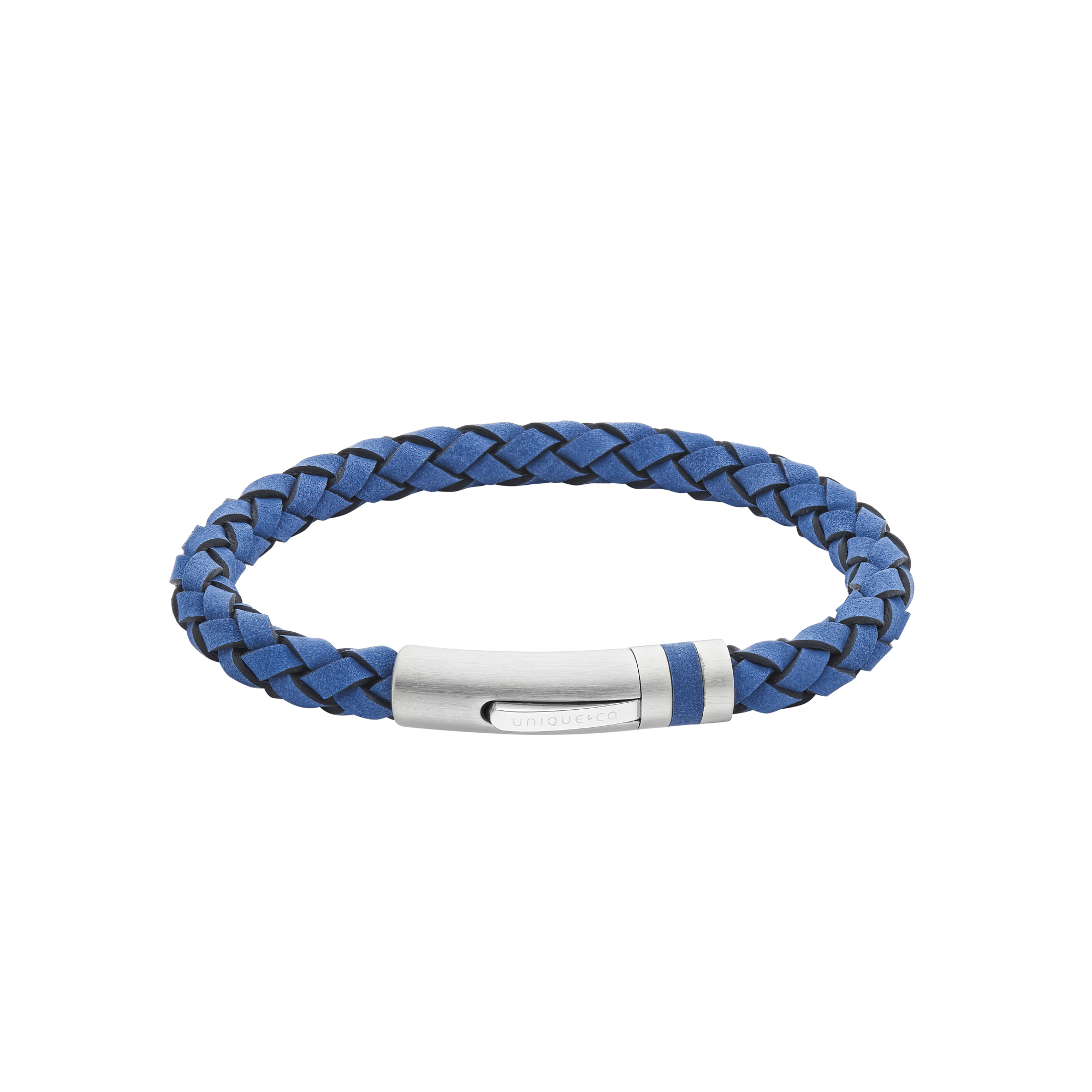 Unique gents woven leather bracelet with a brushed stainless steel clasp.