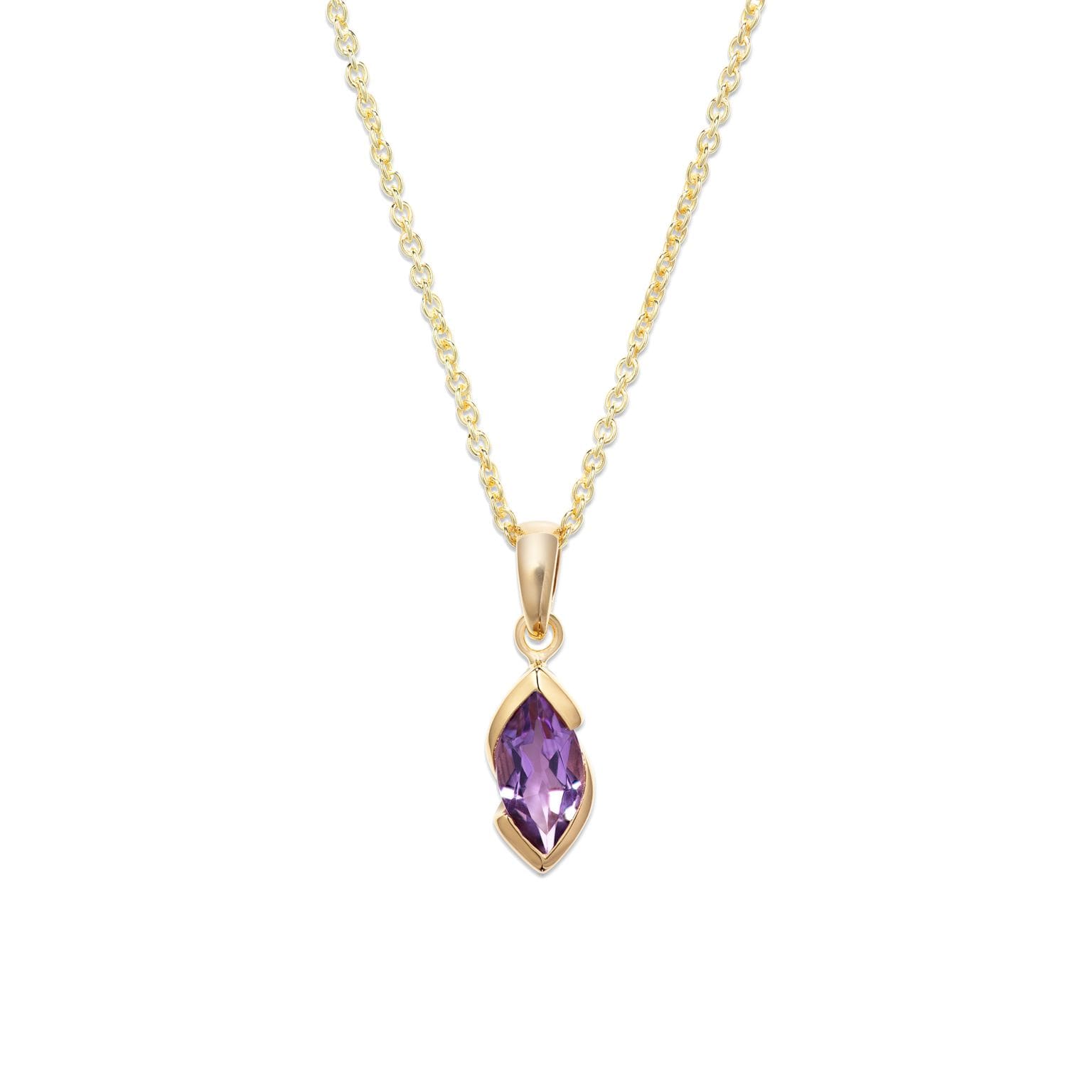Sparkling marquise cut amethyst in a modern setting on an adjustable trace chain.