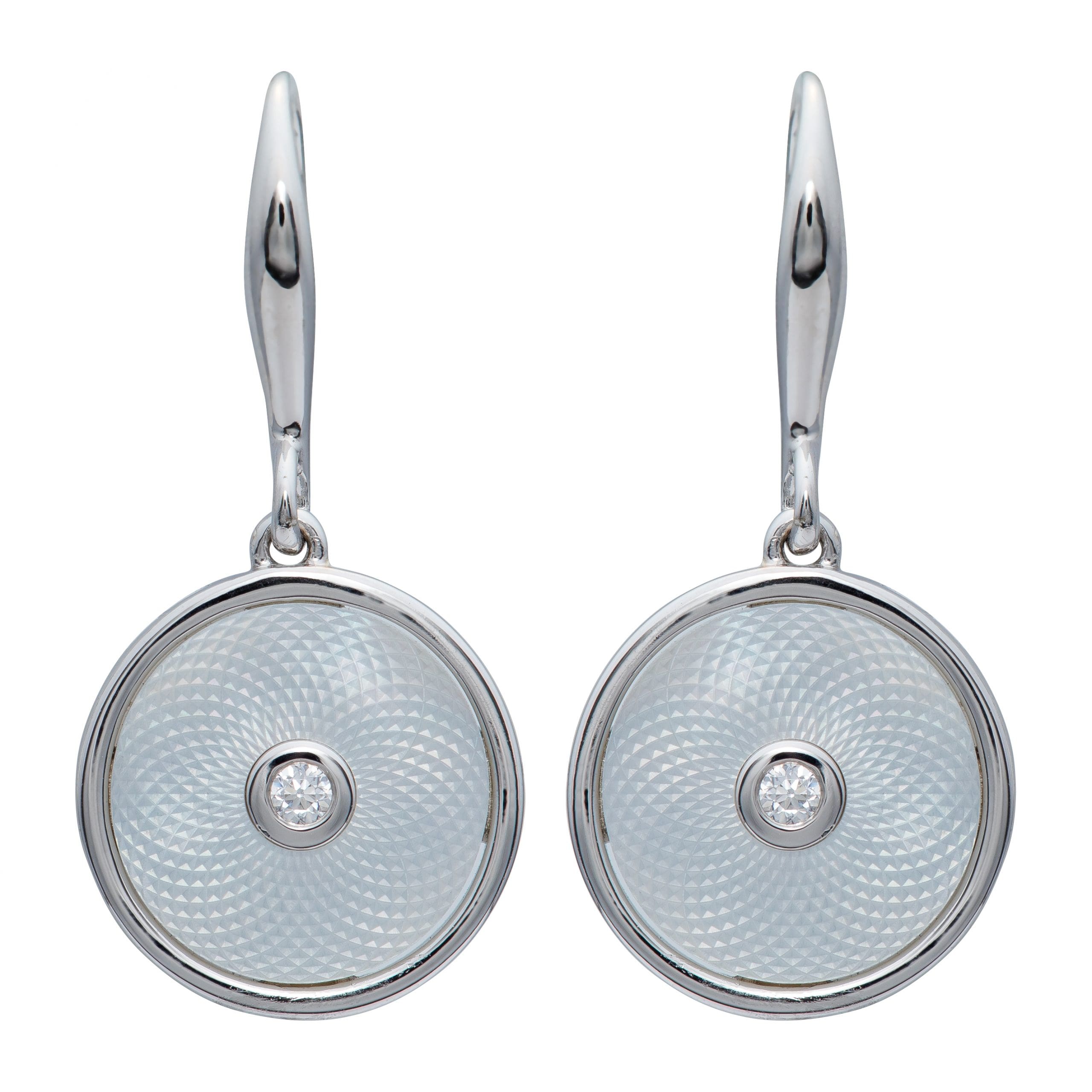 Tactile disc drop earrings inset with patterned mother of pearl and a sparkling CZ.