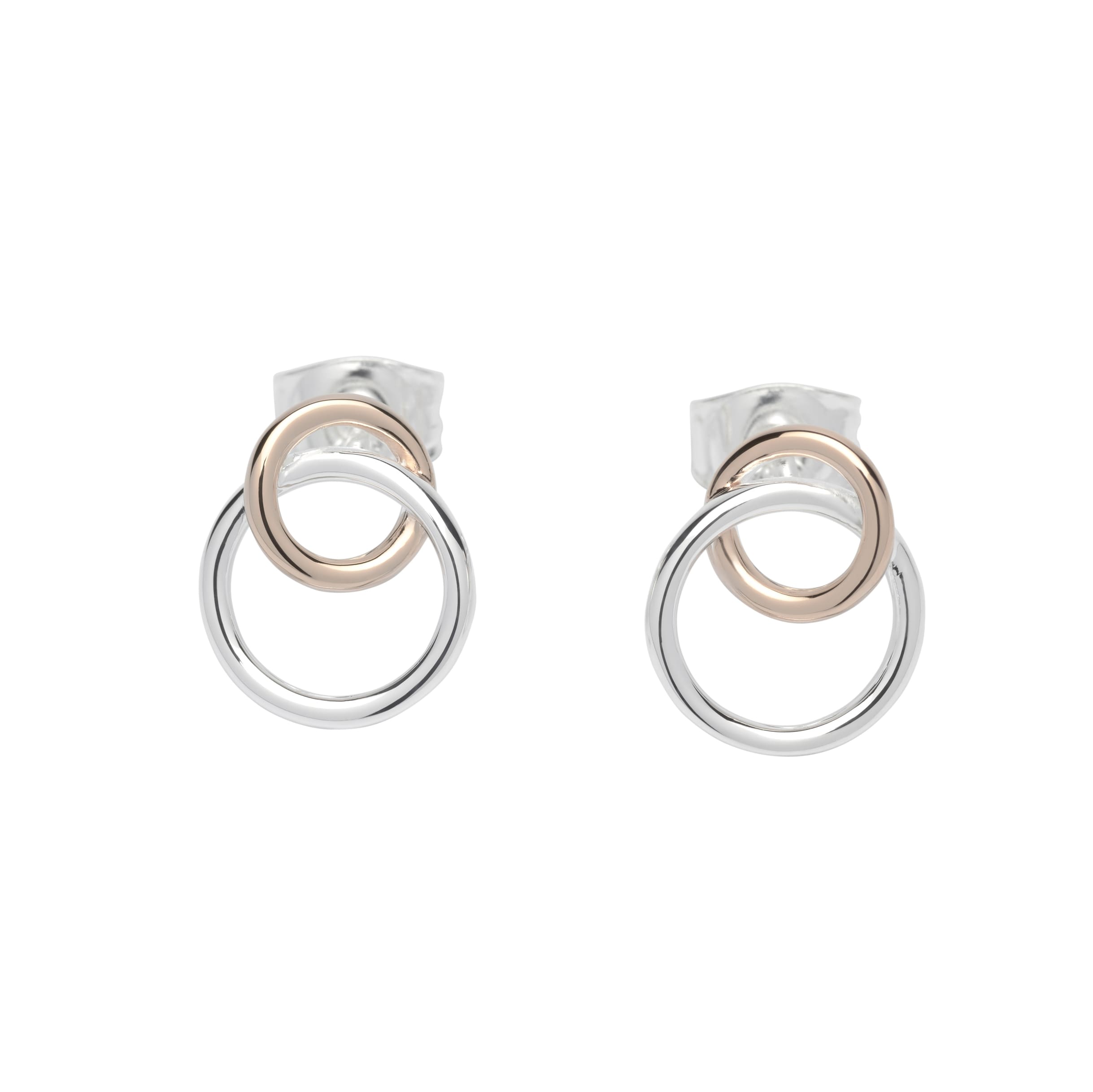 Two interlinked rings – one rose gold – the other polished silver.