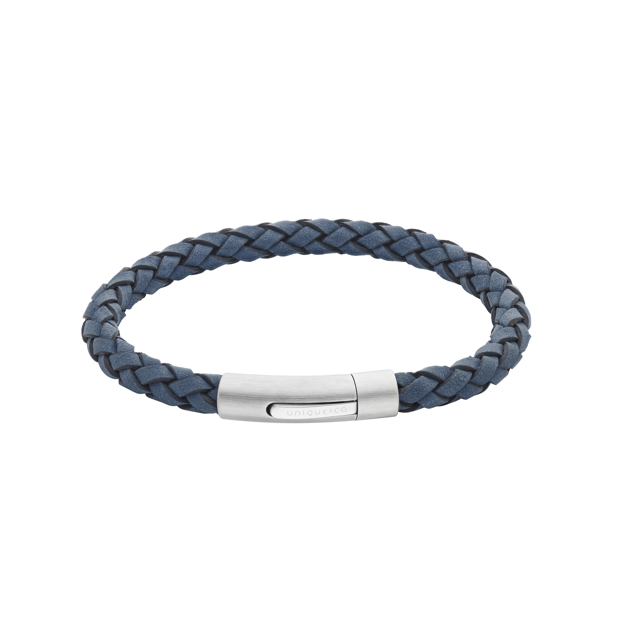 Unique suede woven leather bracelet with a brushed stainless steel clasp.