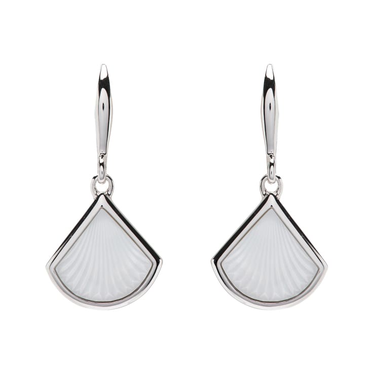 Pretty carved mother of pearl inset in silver hook earrings.