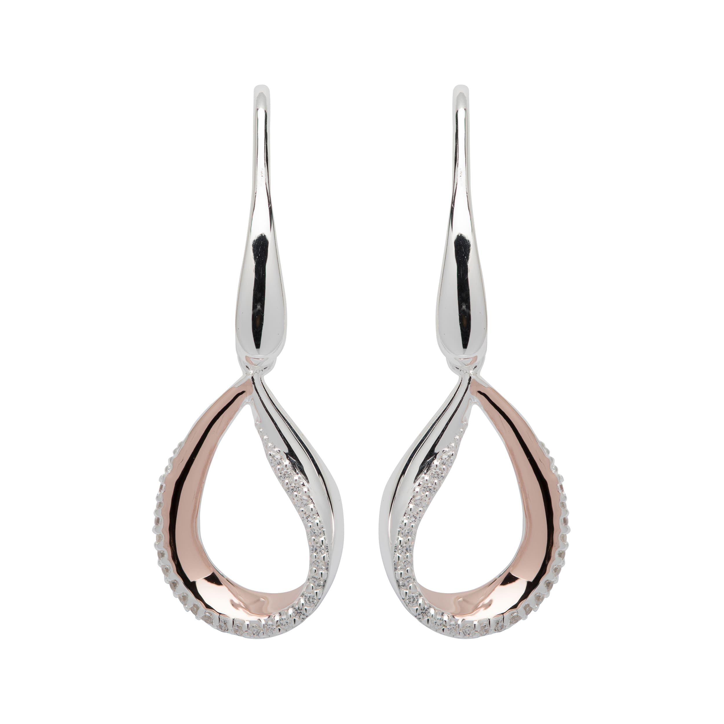 A pretty looping design drop earring with sparkling pave CZ and gold plated detail.