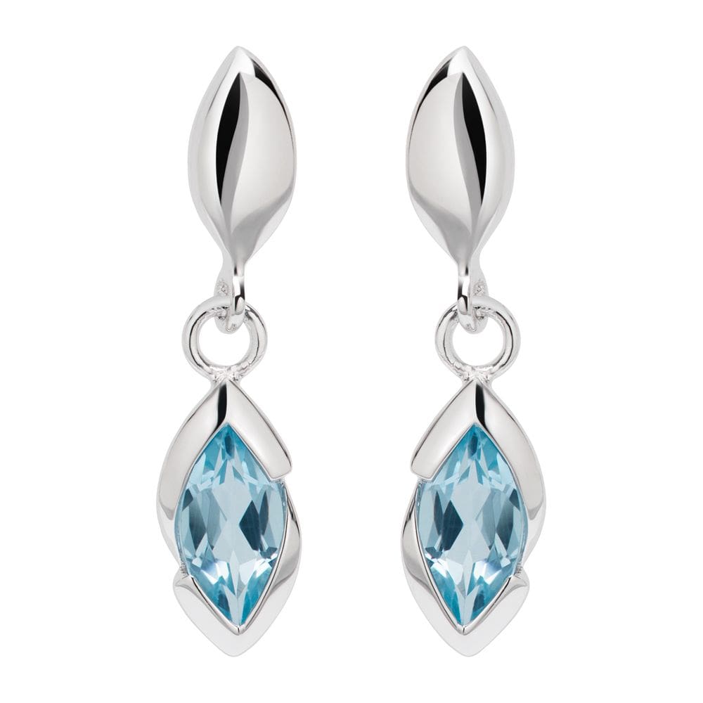 Sparkling marquise cut blue topaz in a pretty articulated drop earring.