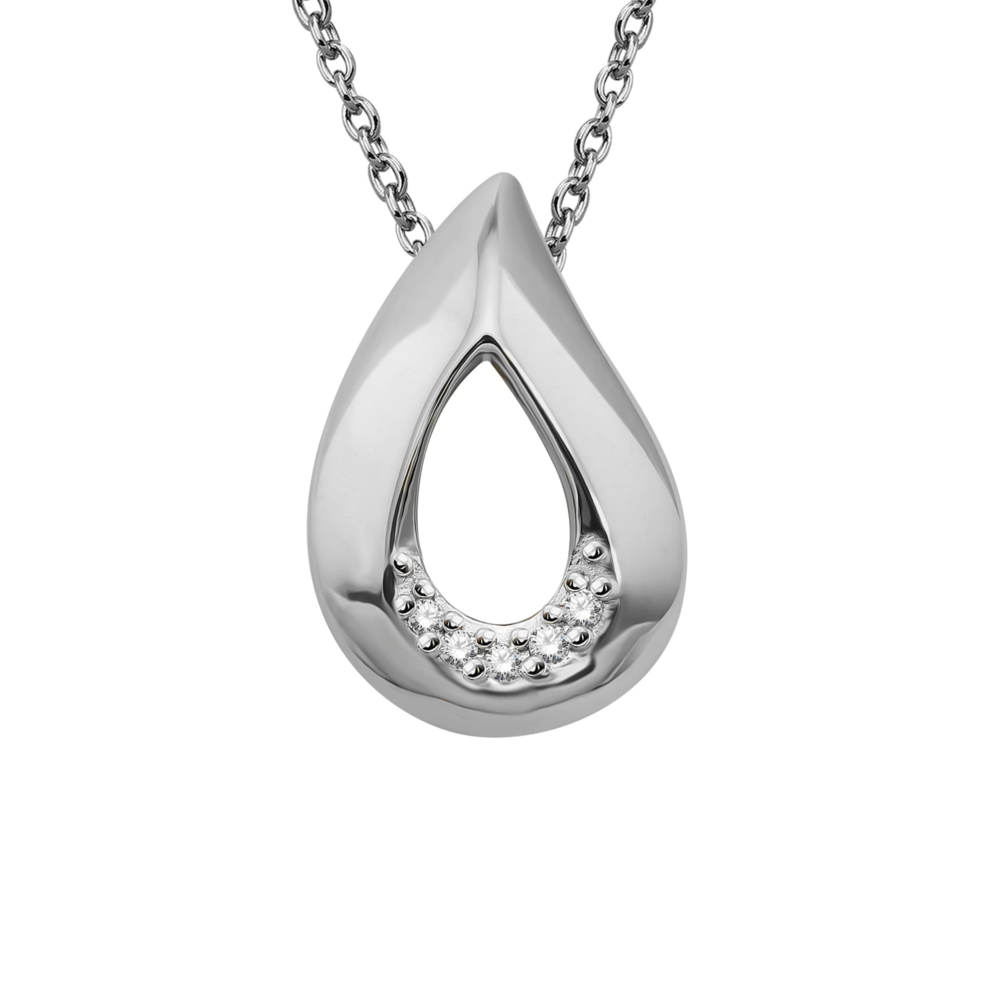 Sparkling cubic zirconia set in a teardrop shaped pendant on a trace chain.