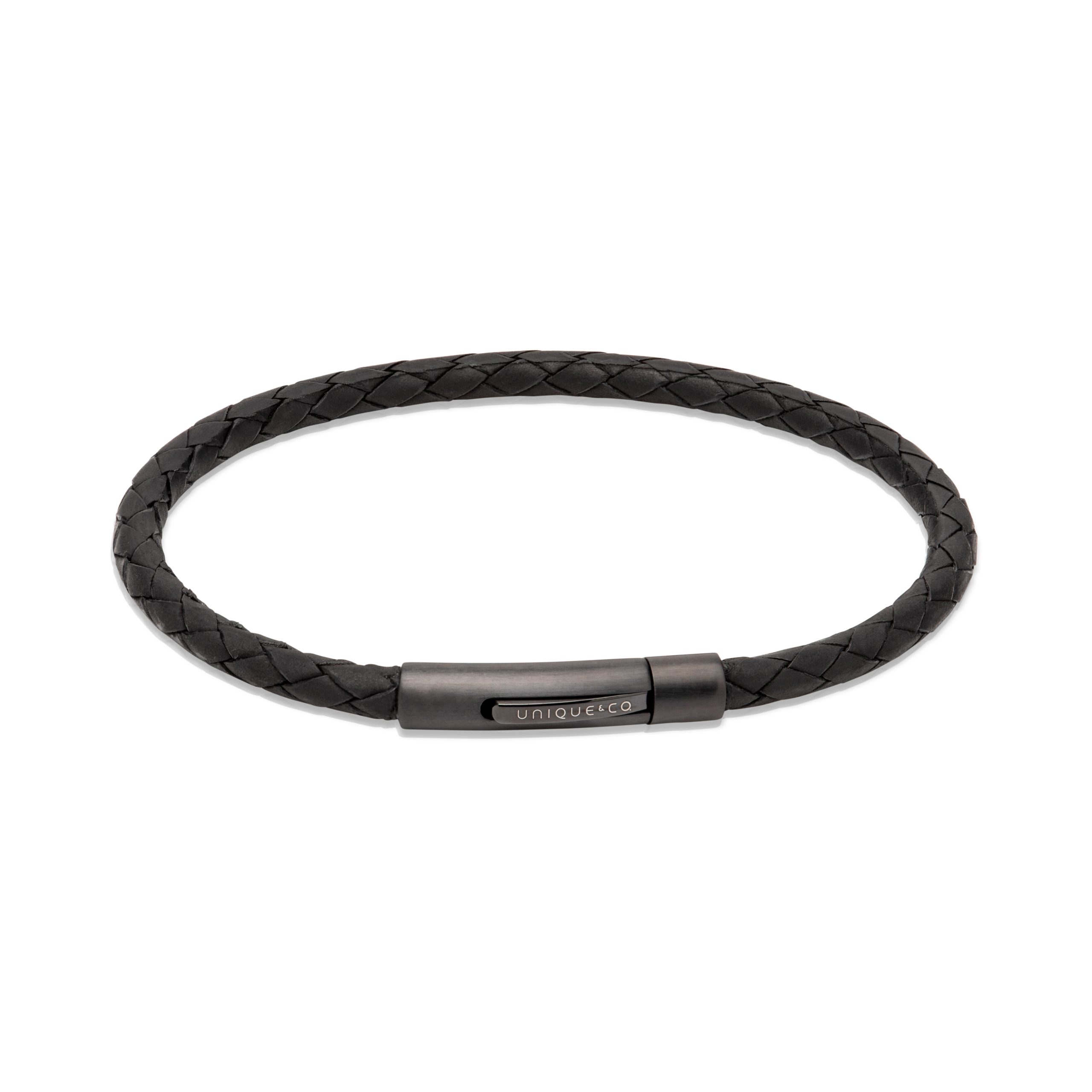 Unique slim leather bracelet in matt black with a black IP plated clasp.
