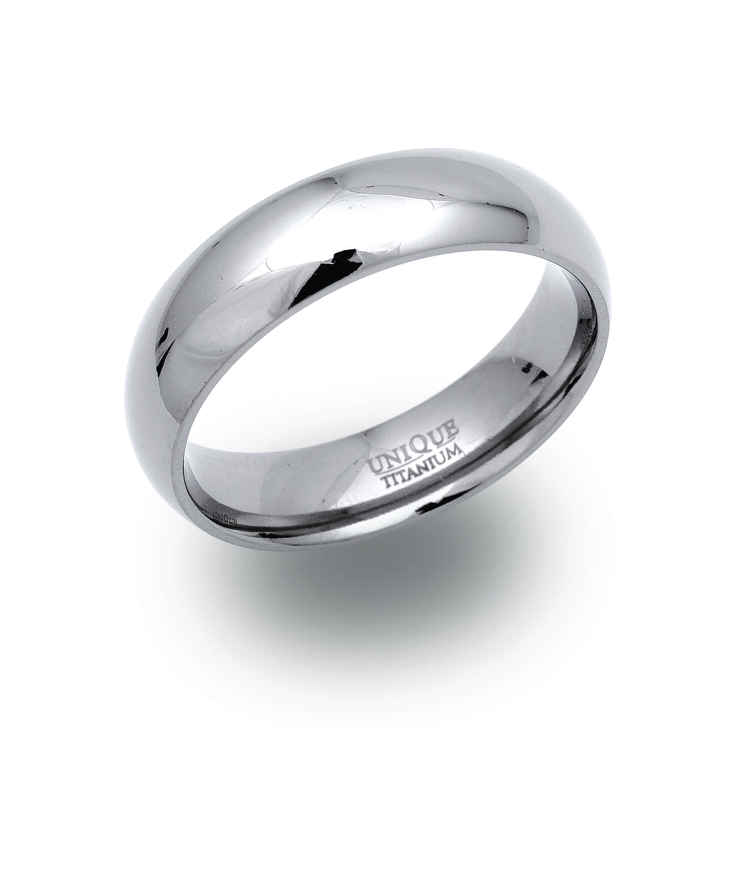 A nice 6mm court style polished titanium ringFinger Size: S ( this ring can’t be sized )Gift Boxed.