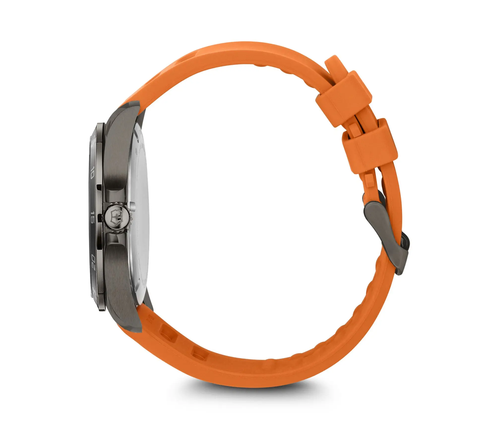 Local and home time in one easy glance: with its GMT function, this stunning watch keeps you instantly in touch with both, wherever your trip takes you. Boasts iconic Swiss Army knife-shaped features, plus an optional rubber strap for an exciting all-terrain, sporty twist on a classic design. Ideal for the global traveller who wants to stay connected to home. It’s the closest you’ll get to time travel.