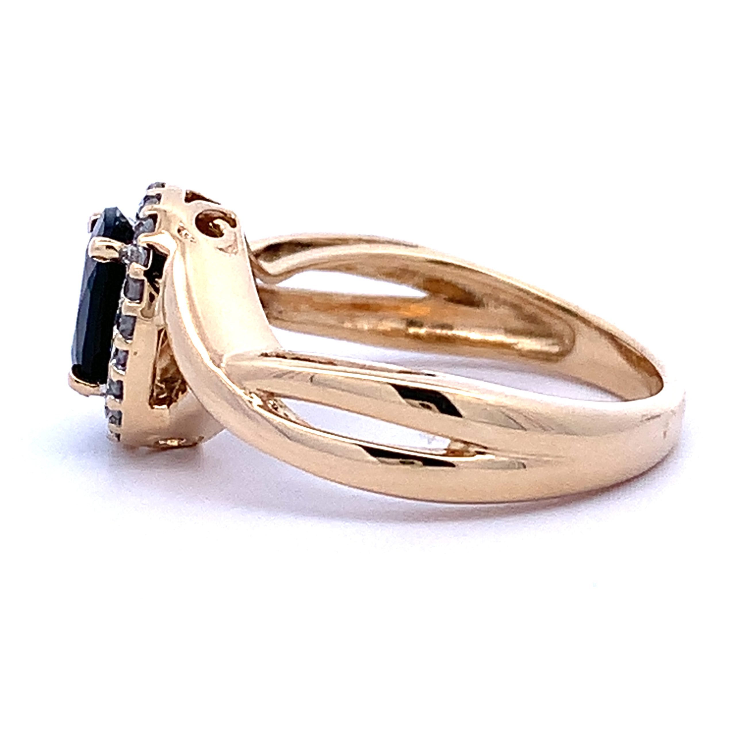 A classic cluster ring set with round cut blue sapphire and diamond.