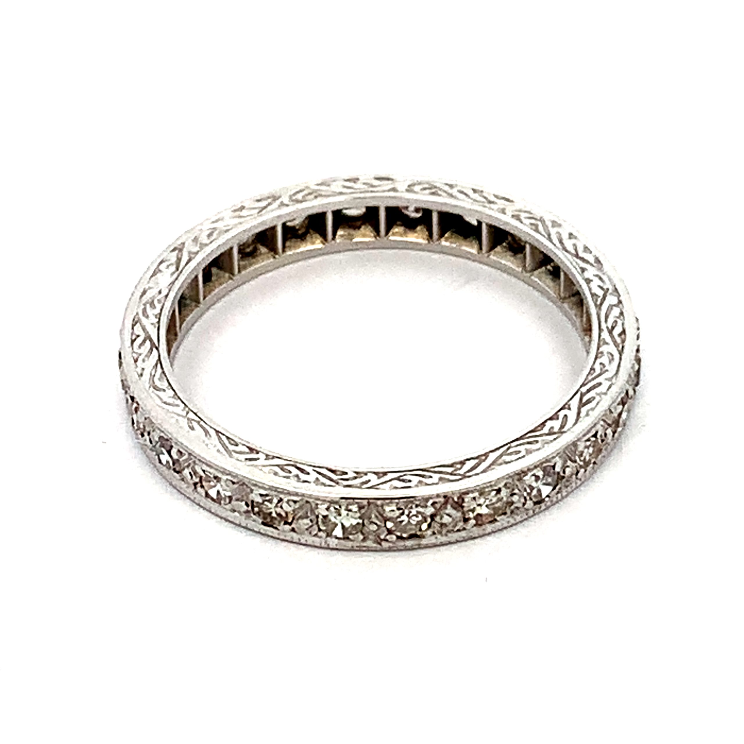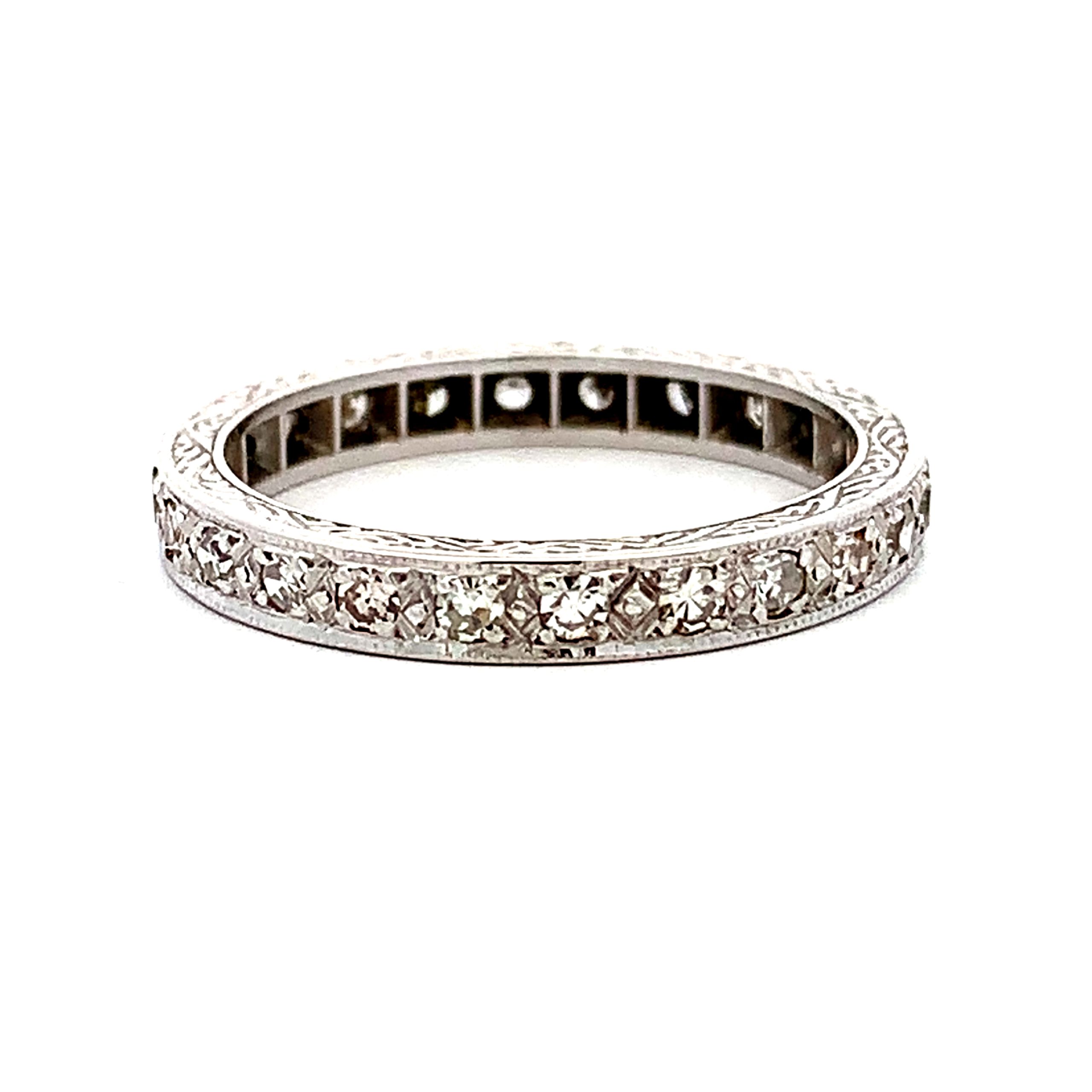 A beautiful vintage eternity ring in white gold grain set all round with round eight-cut diamond.  With very good colour and clarity diamonds.