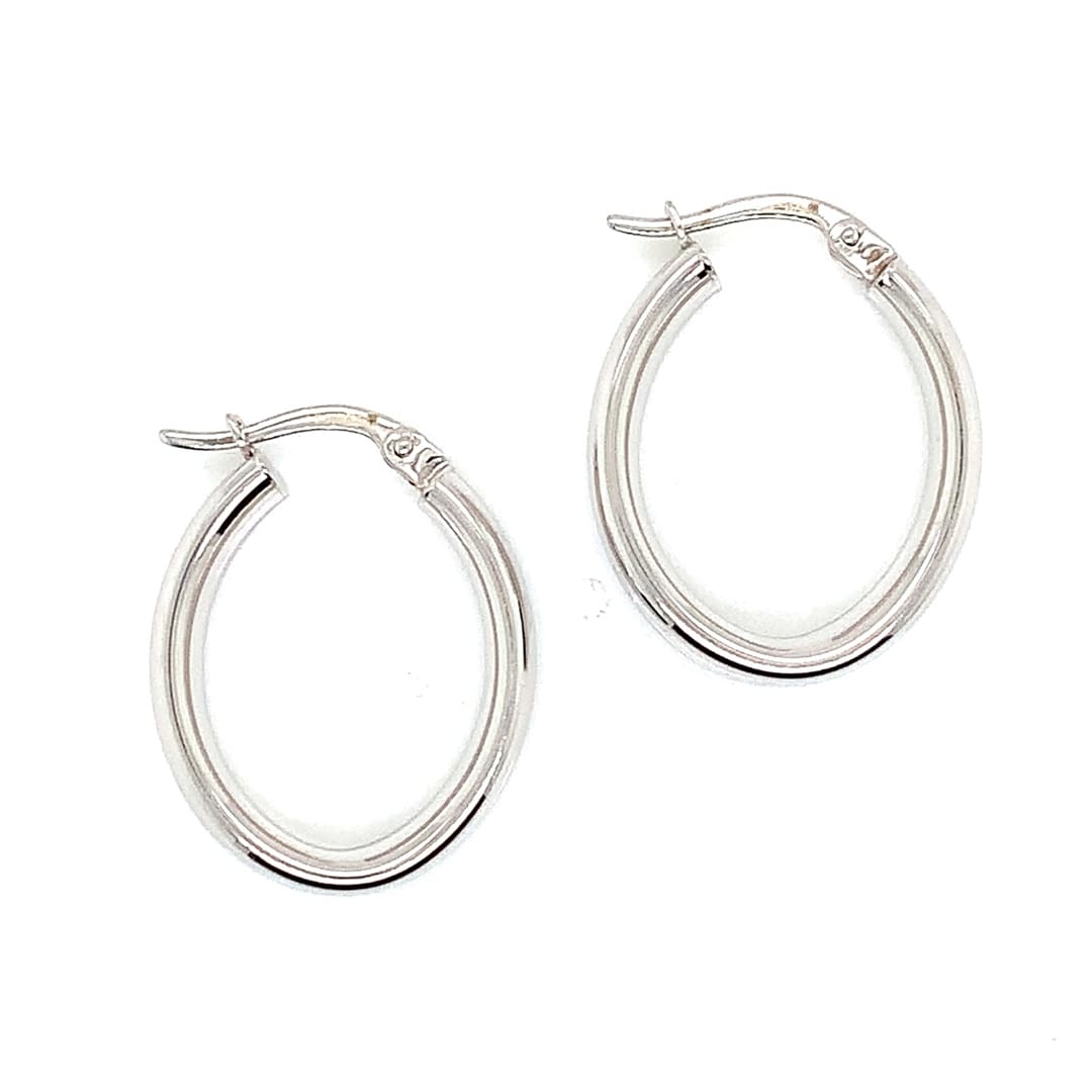 Smooth polished oval shaped hoop earrings. Creole style hoops with hinged posts.
