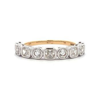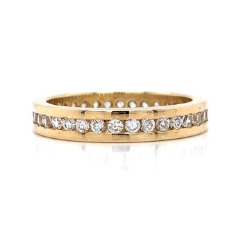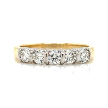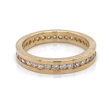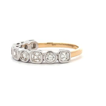 A modern white gold seven stone ring channel set with round cut blue Sapphires and Cubic Zirconia.Metal: 9 Carat White GoldWidth: 3.3 mmCurrent Finger Size: PAs a pre owned item, this ring has been examined and professionally cleaned and polished in our workshop.Gift Boxed