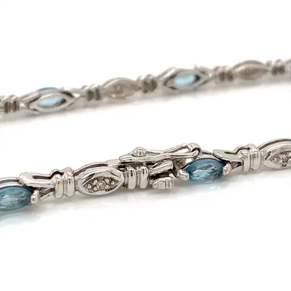 A pretty white gold dress bracelet set with blue topaz and small grain set diamonds.