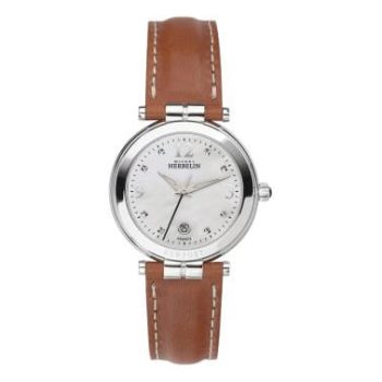 Small but beautifully formed, our Salambo with super slim strap is as cute as it is pretty. The round two tone case is complemented by an elegant chocolate brown strap in the softest calf leather. The fluted dial has crystals at the 12 and 6 o’clock positions and the logo inside the central chapter ring. A fun take on the classic strap watch.