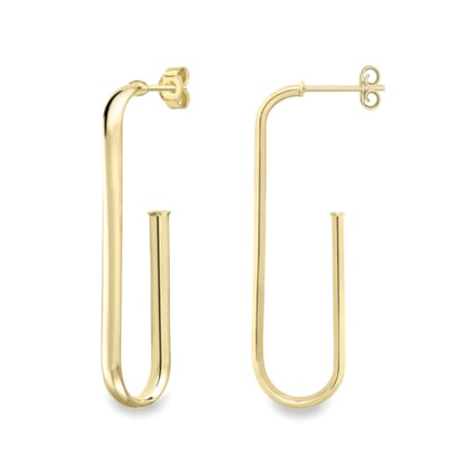 Simple 9ct yellow gold oval elongated polished stud earrings. Internal dimensions 10mm x 40mm