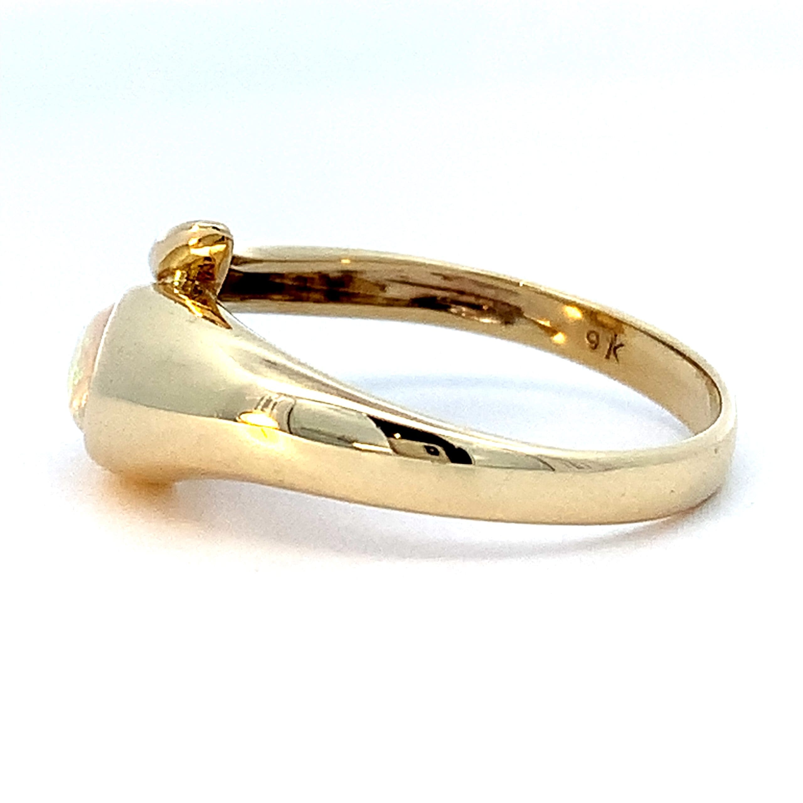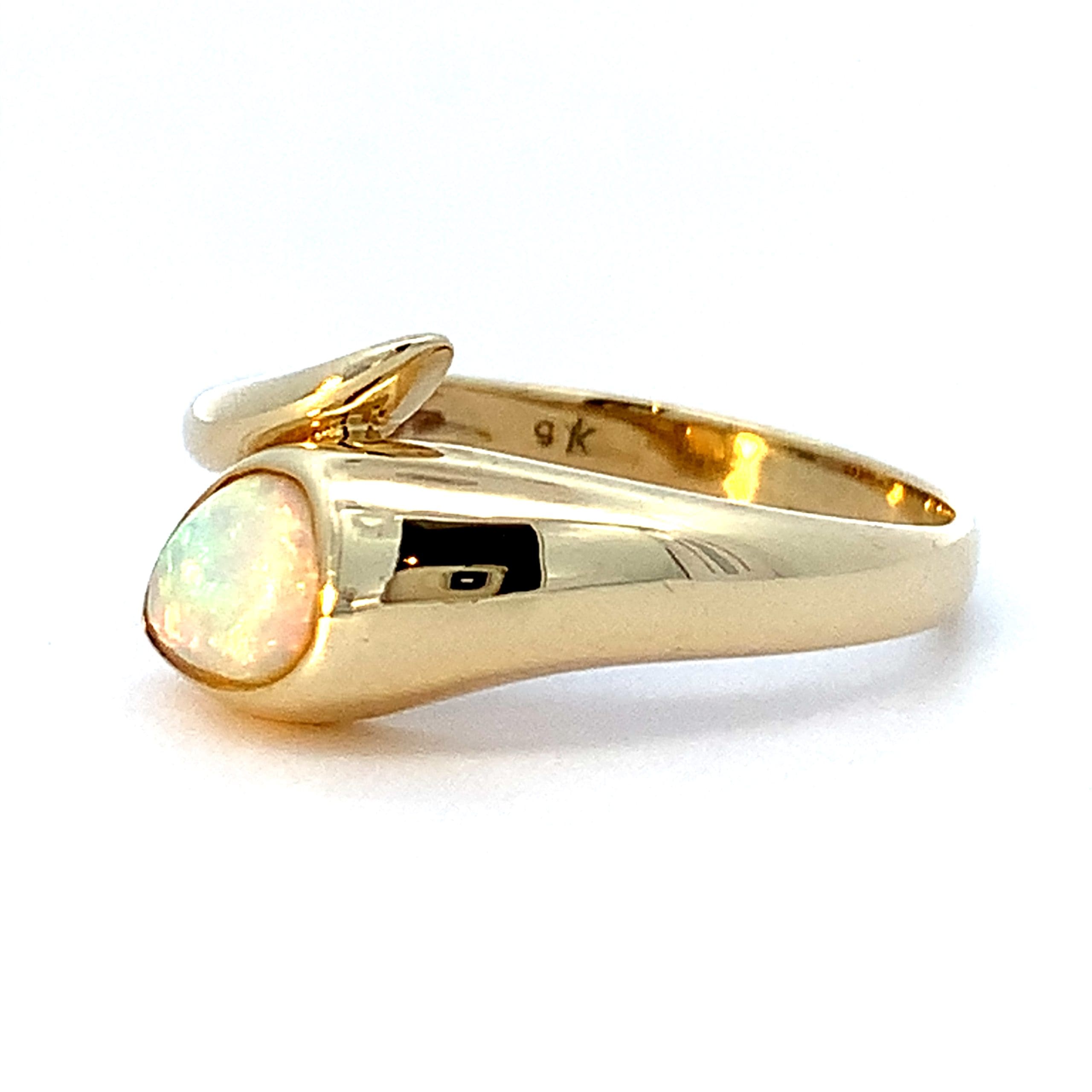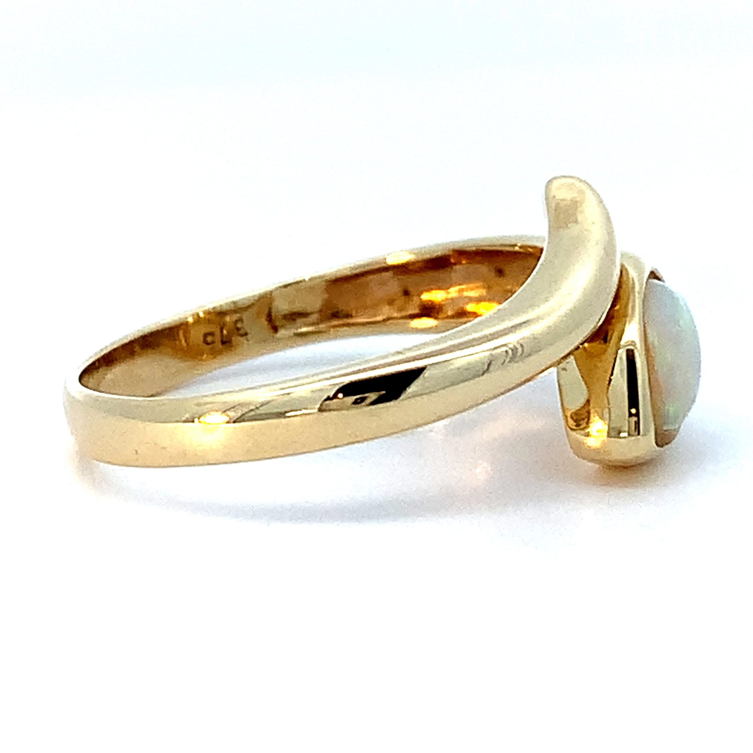 A smooth yellow gold ring, rub-over set with a colourful opal cabochon.