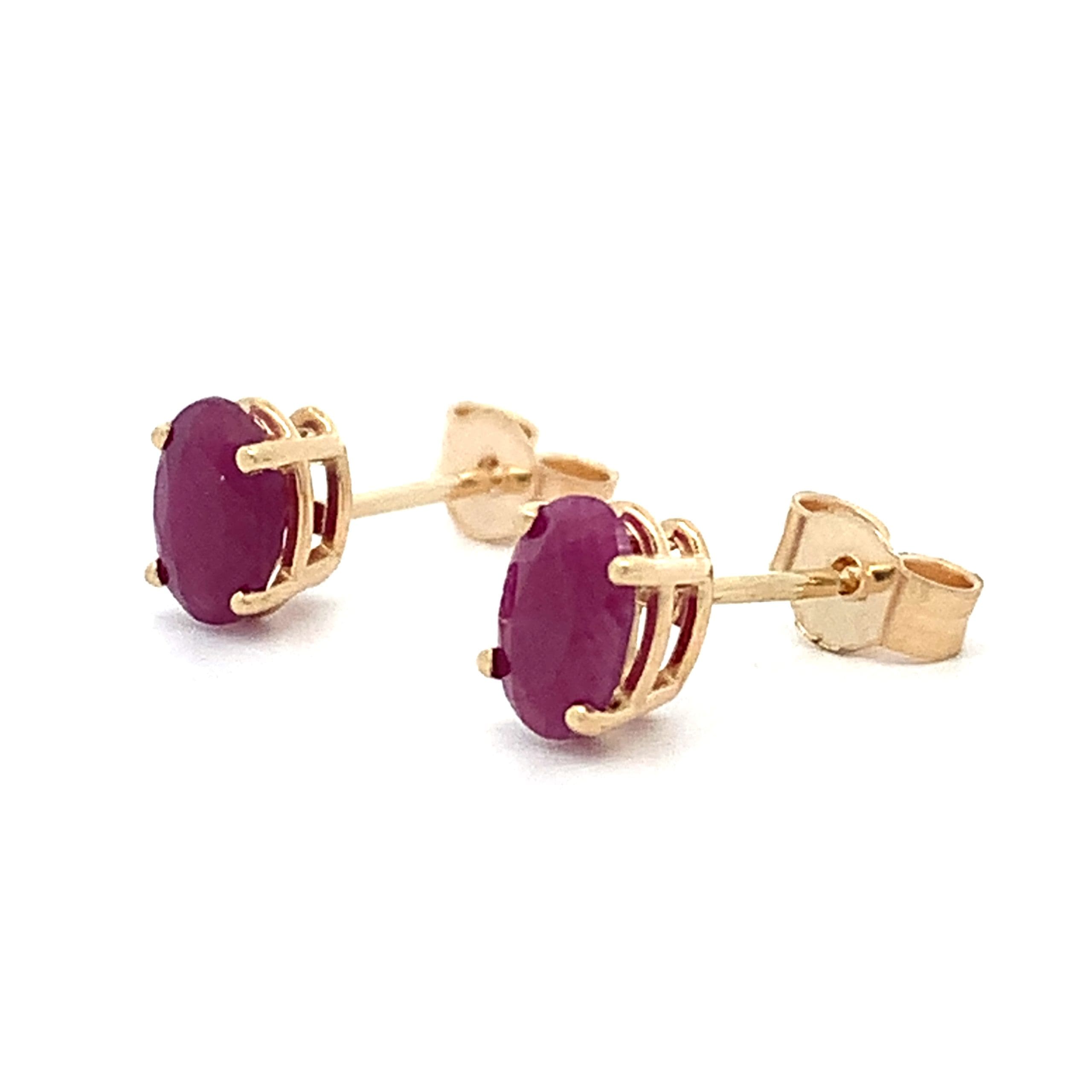 Elegant small ruby stud earrings claw set with oval cut rubies. With secure double click posts.
