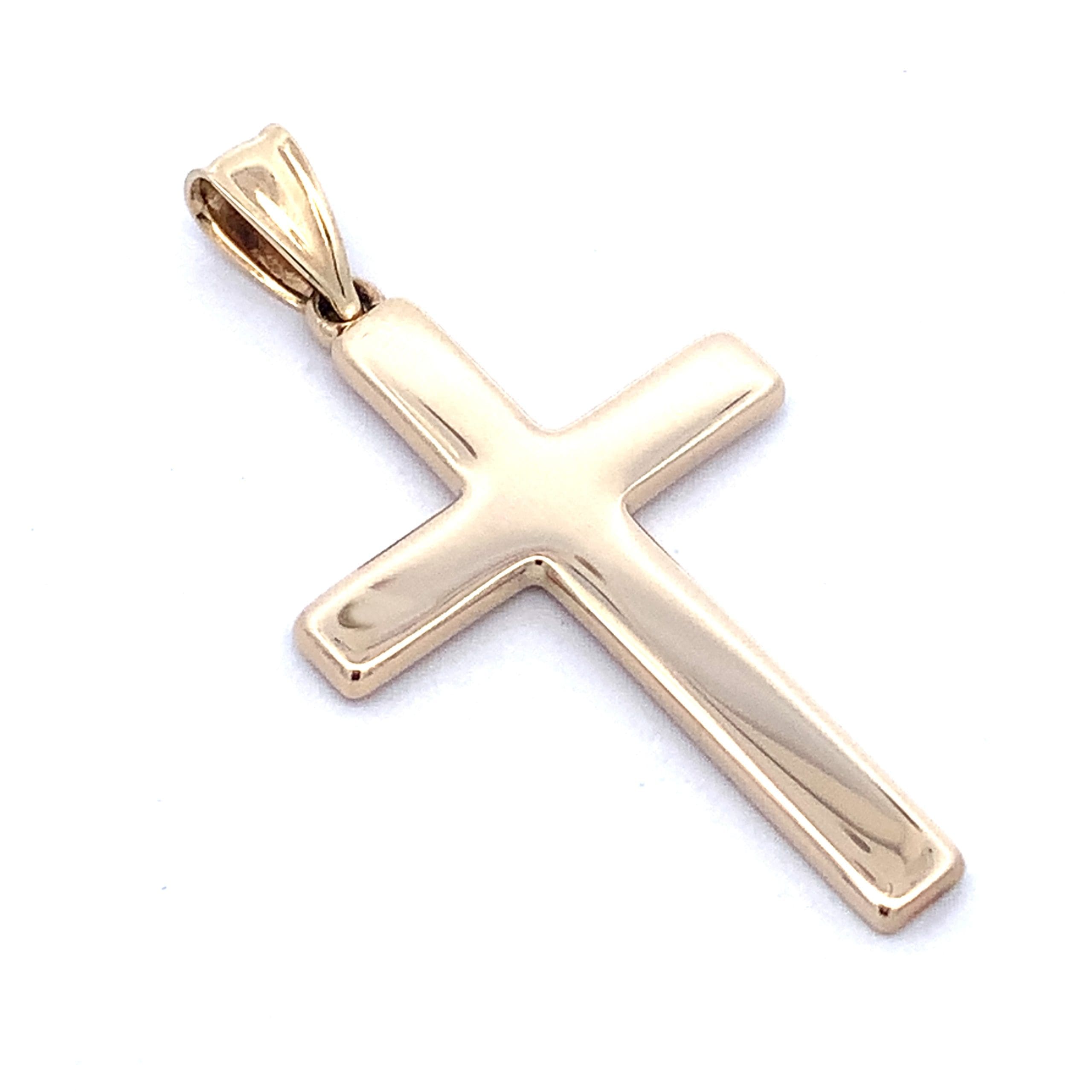 A plain yellow gold cross with a generously sized bale.