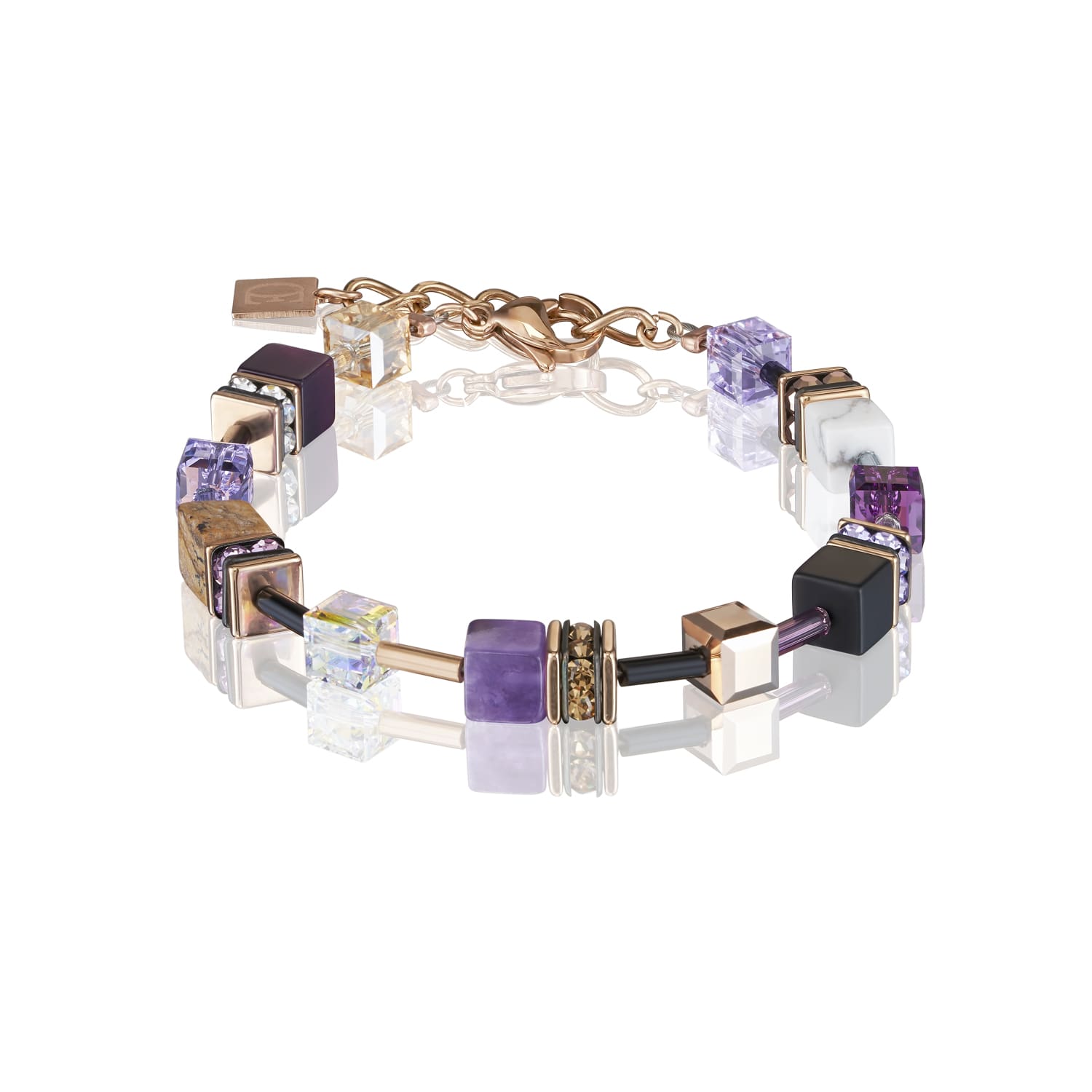 Every stone a masterpiece. Timelessly beautiful bracelet from the GeoCUBE® line with exciting stones – a genuine nature experience. Every piece of jewellery that you order from COEUR DE LION is silky-embedded in a high-quality designer case and comes with a certificate of authenticity. MATERIALS: Howlite Landschafts-Jaspis Onyx synthetic Tiger’s eye Heller Amethyst Swarovski® Crystals …