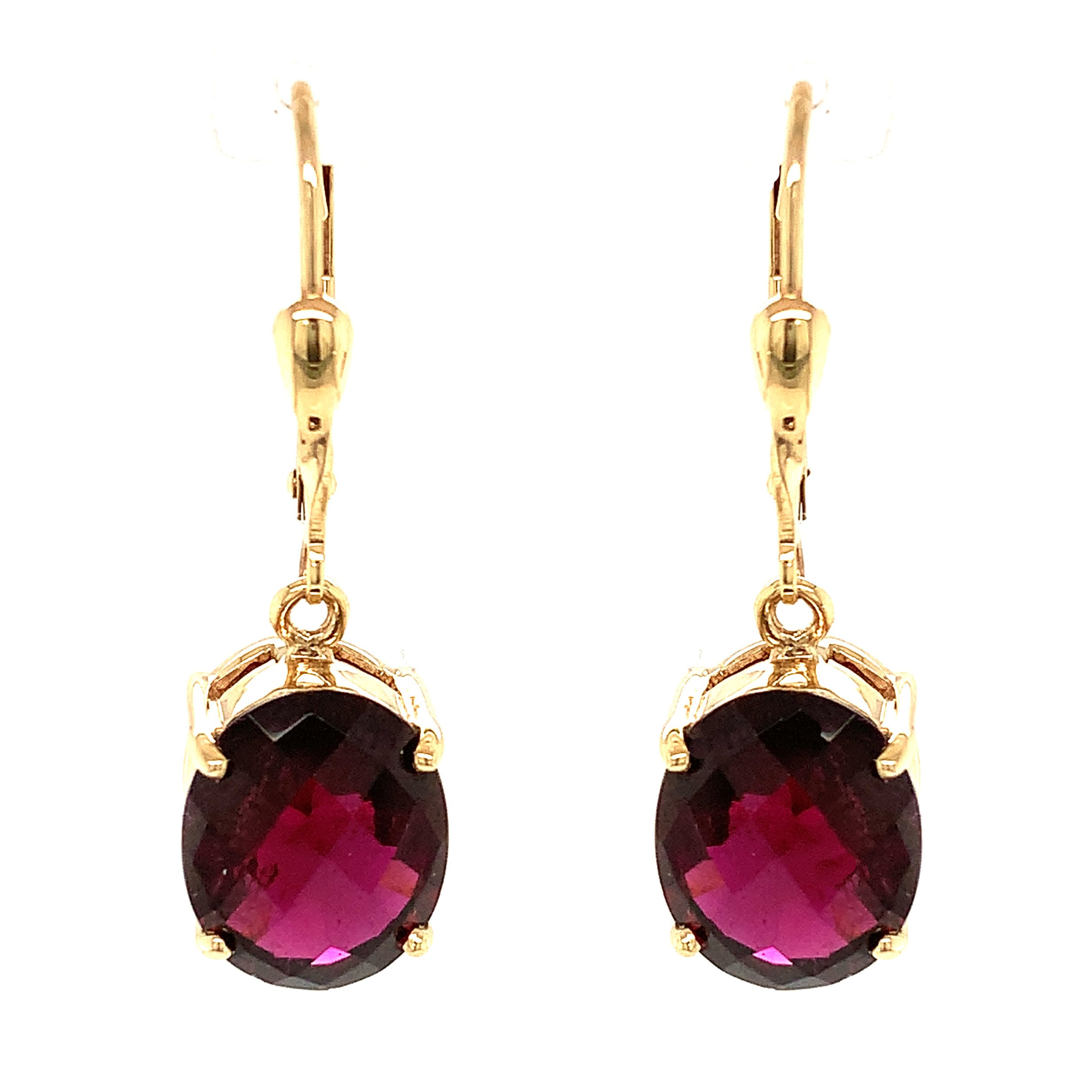 Sparkling faceted oval garnets in drop basket settings. Fitted with secure continental style hooks. Metal: 9 Carat Yellow Gold Date: Modern Total Height: 30 mm As a preowned item, these earrings have been examined and professionally cleaned and polished in our workshop. Gift Boxed