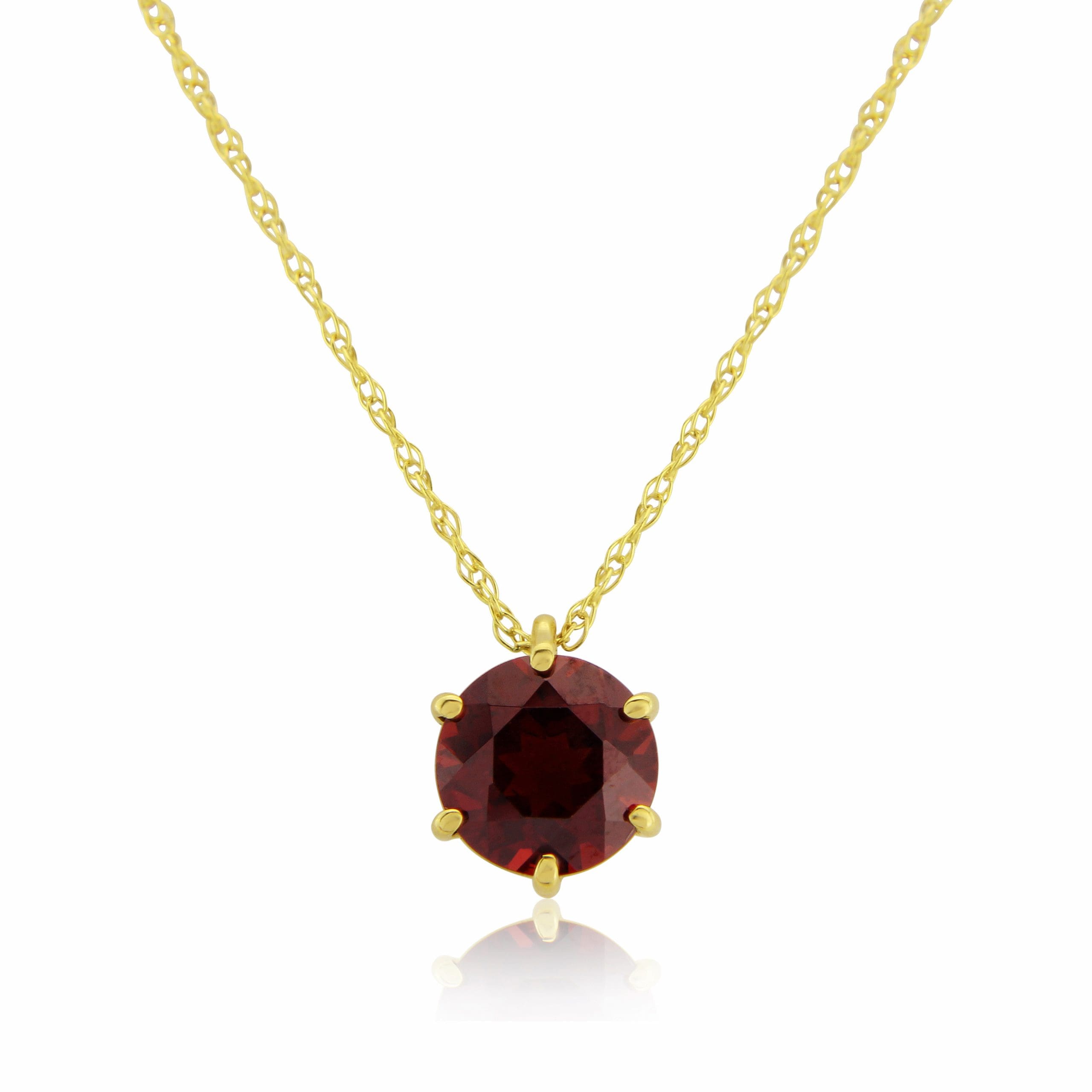 A gold pendant and chain with a round faceted garnet in a pretty clawed setting. Metal: 9ct Yellow Gold Pendant Width: 7 mm Chain: Adjustable – 16 or 18 Inches Gift Boxed