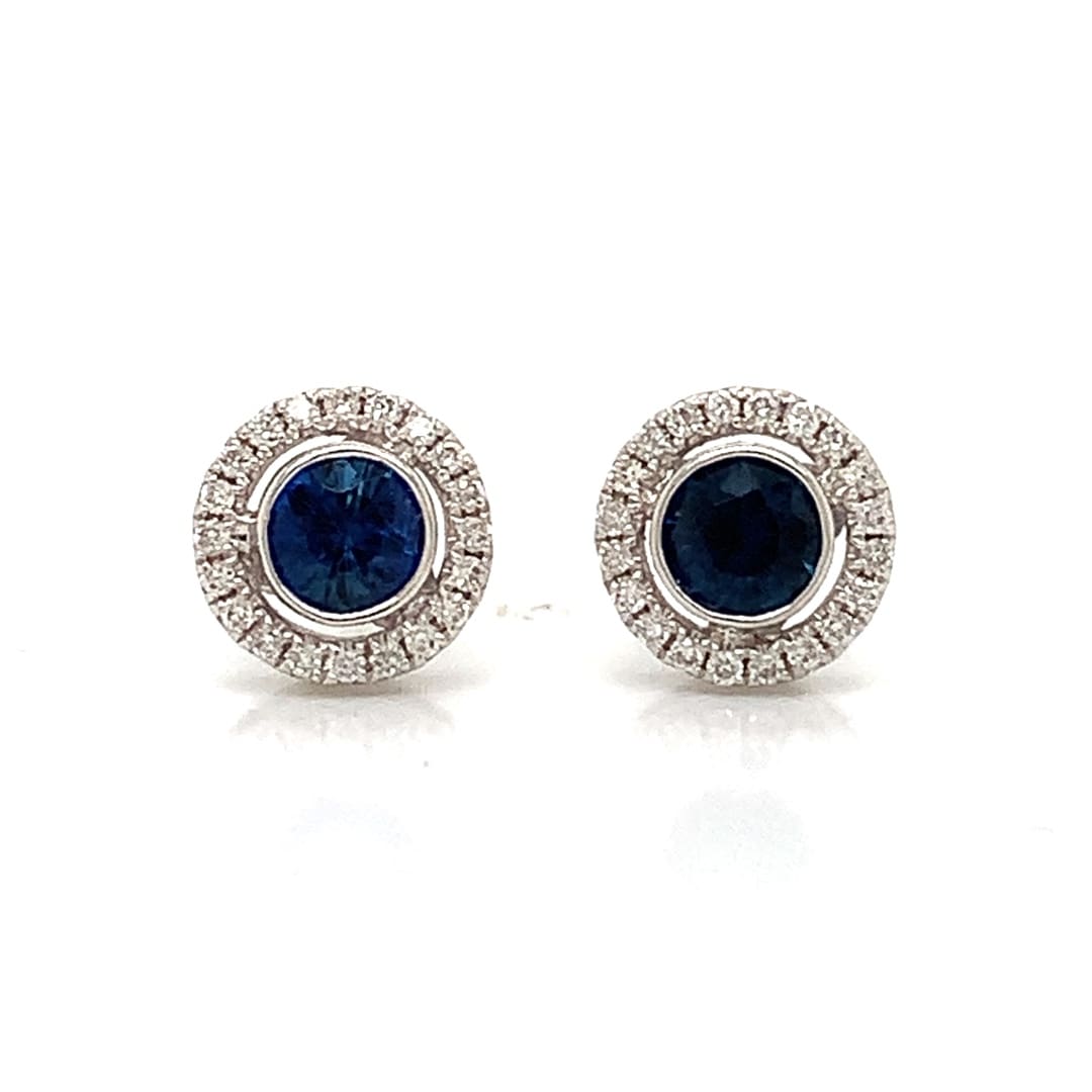 Neat half hoop earrings claw set with round cut blue Sapphires and round cubic zirconia. Metal: 14 Carat Yellow Gold Date: Modern Dimensions: H 12 mm x W 2.9 mm Fittings: Posts and Scroll Backs As a preowned item, these earrings have been examined and professionally cleaned and polished in our workshop. Gift Boxed
