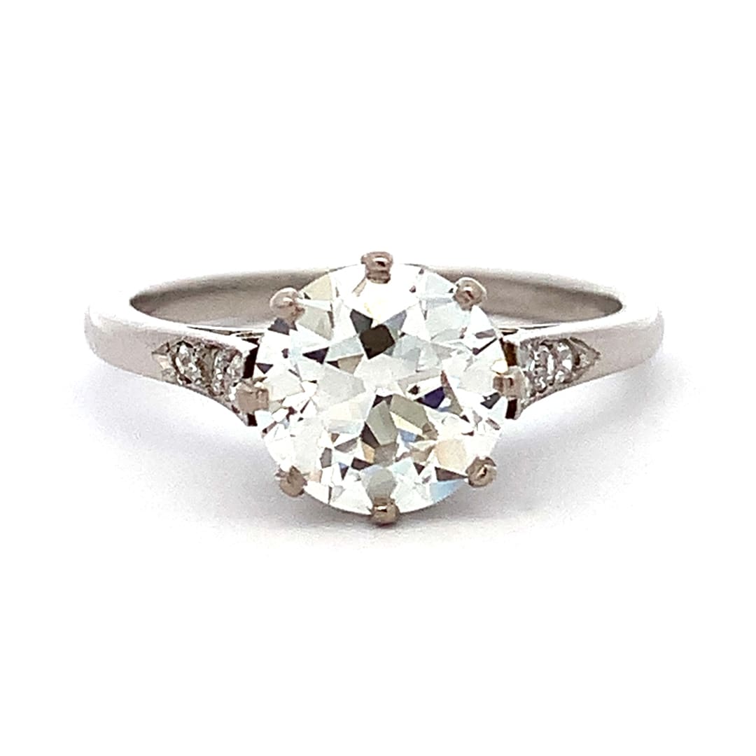 A beautiful vintage platinum solitaire ring with a stunning old cut diamond in a six claw setting and diamond set shoulders. In excellent condition. Metal: 950 Platinum Assessed Diamond Weight: 1.605 Carat Assessed Diamond Colour and Clarity: F/G / Si1 Polish: Excellent Current Finger Size: K As a preowned item this ring has been professionally [...]