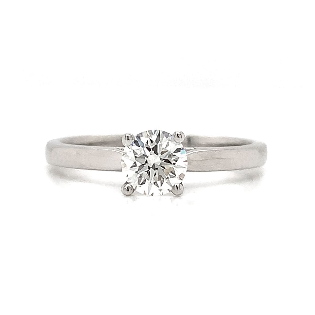 A bright, G.I.A certificated 0.52 carat brilliant cut diamond in a modern platinum ring with a four claw setting. Metal: 950 Platinum Date: Modern Diamond Weight: 0.52 Carat Colour and Clarity: I - Si1 Cut & Polish: Excellent Current Finger Size: L1/2 New RRP £2,900 As a pre owned item, this ring has been examined [...]