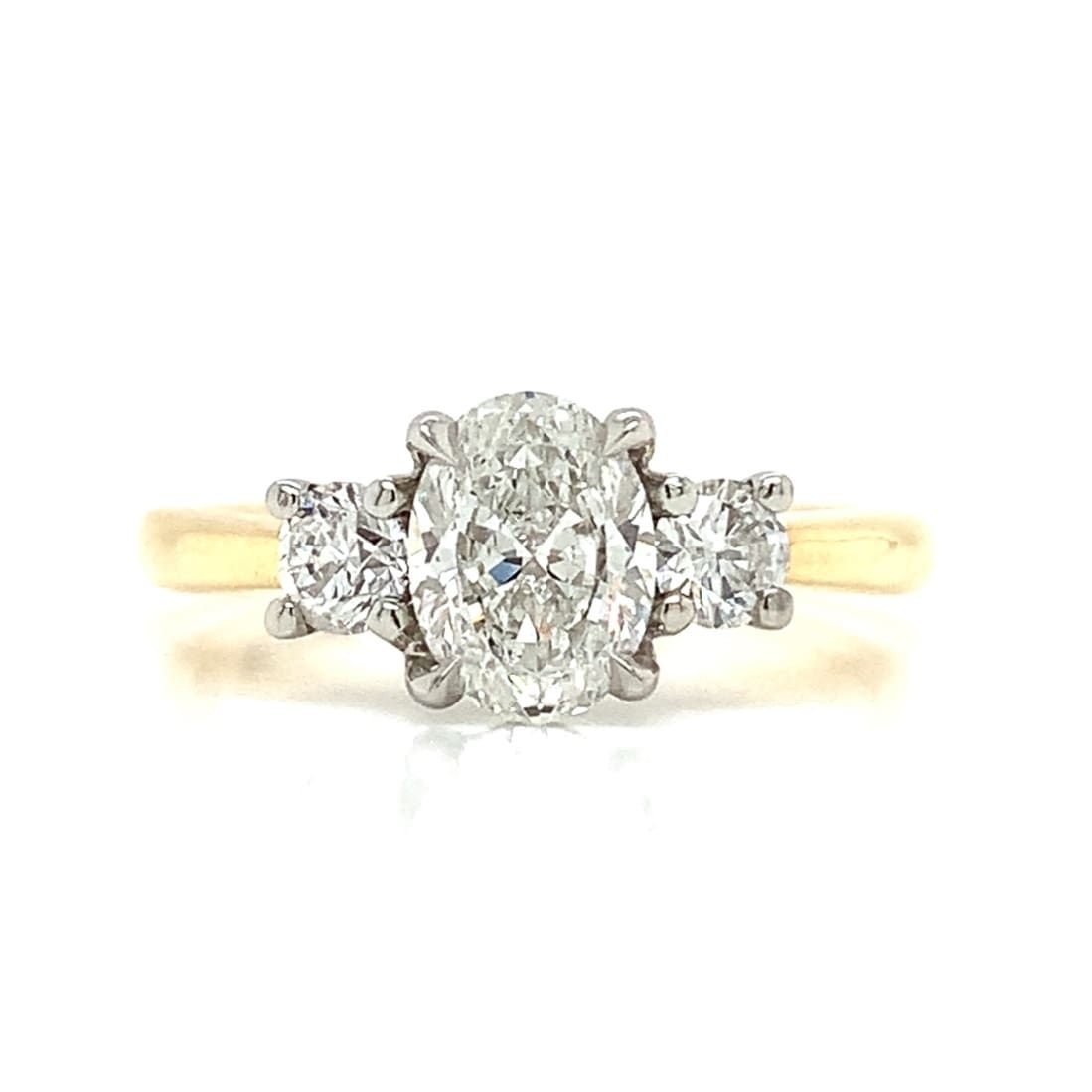 A beautiful diamond trilogy ring with a generous 1.01 carat oval cut centre stone set with talon claws and round cut outers in an elegant platinum setting. Made with a smooth 18 carat yellow gold ring shank. GIA Certificated Centre Diamond Details: - Diamond Weight: 1.01 Carat - Diamond Colour & Clarity: F / Vs1 [...]