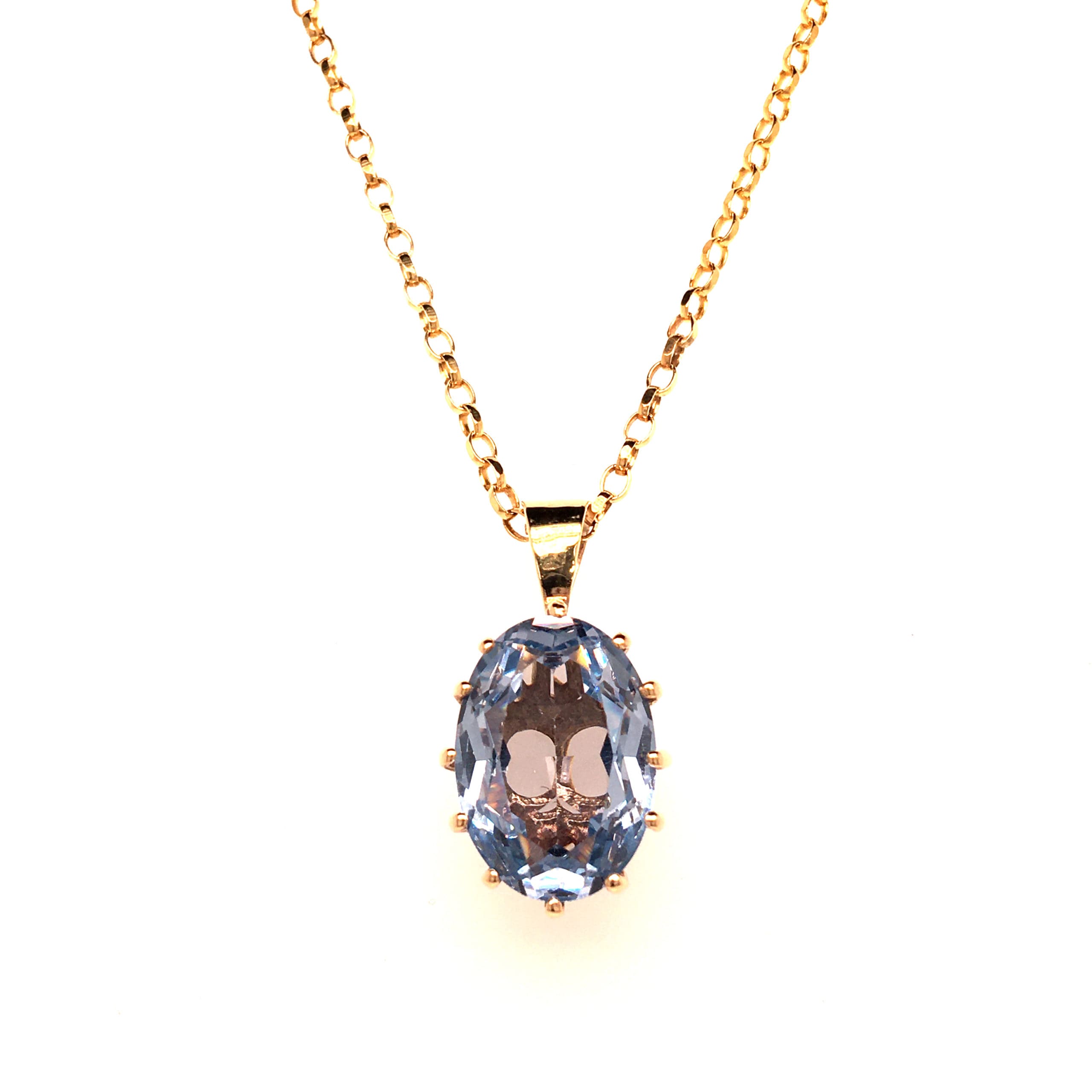 A pretty oval cut blue Topaz claw set in a rounded basket setting with a sparkly filed belcher chain. Metal: 9 Carat Yellow Gold Date: Modern Pendant Length: (Including Bale) 22 mm Chain Length: 24 Inch Clasp: Bolt Ring As a pre owned item, this necklace has been examined and professionally cleaned and polished in …